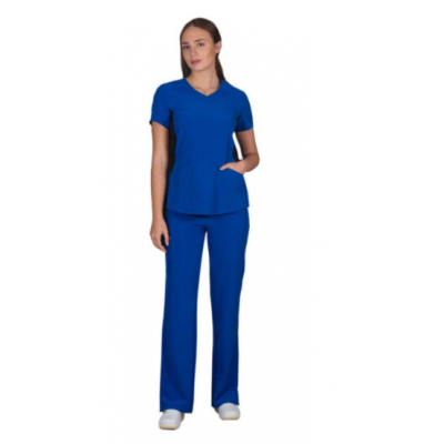 Μπλούζα: Λαιμόκοψη σε σχήμα V, μεσάτη, δίχρωμη με μαύρες λεπτομέρειες στο πλάι και δύο τσέπες μπροστά.