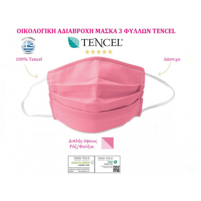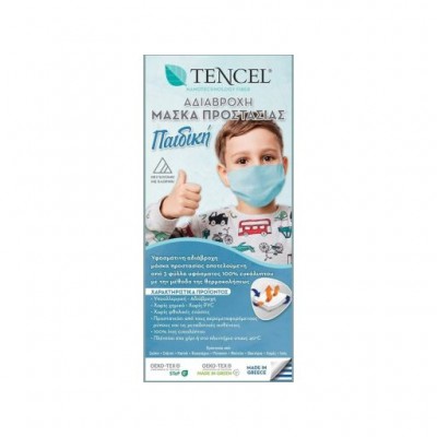 Η παιδική μάσκα προστασίας προσώπου μπορεί να πλυθεί και να χρησιμοποιηθεί ξανά. Μειώνει την έκθεση σε βακτήρια, σκόνη, γύρη, μούχλα, καυσαέρια, χνούδια και αλλεργίες από κατοικίδια. Κατασκευασμένη από 100% ύφασμα Tencel (ευκάλυπτος) στο εσωτερικό και το εξωτερικό φύλλο και ένα εσωτερικό αδιάβροχο φιλμ από PU*. Τα τρία φύλα έχουν συγκολληθεί ομοιόμορφα μεταξύ τους με ειδική τεχνοτροπία θερμοσυγκόλησης προκειμένου να διασφαλίσουν την ακεραιότητα του προϊόντος. Η μάσκα διαθέτει παράλληλες πτυχώσεις σε όλο το ύψος για την καλύτερη εφαρμογή και την καλύτερη κάλυψη του προσώπου.