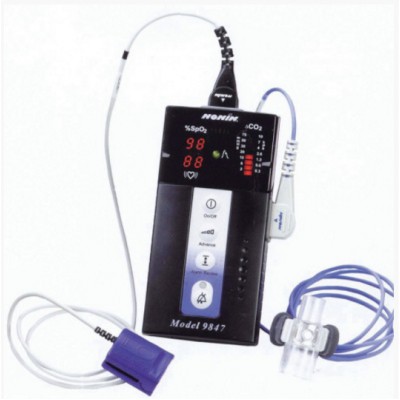 Το όργανο μέτρησης Nonin 9840 συνδυάζει την καπνογραφία και την οξυμετρία σε μία φορητή συσκευή. Αποτελεί την πιο προηγμένη, ευέλικτη και αποτελεσματική συσκευή ελέγχου του καρδιαγγειακού συστήματος. Κατασκευασμένο σύμφωνα με τα υψηλά standards της εταιρείας Nonin, παρέχει ακριβή αποτελέσματα σε πραγματικό χρόνο για τον κορεσμό του οξυγόνου στο αίμα (SpO2), τη συχνότητα των καρδιακών παλμών και τα επίπεδα διοξειδίου του άνθρακα στο αρτηριακό αίμα (etCO2).