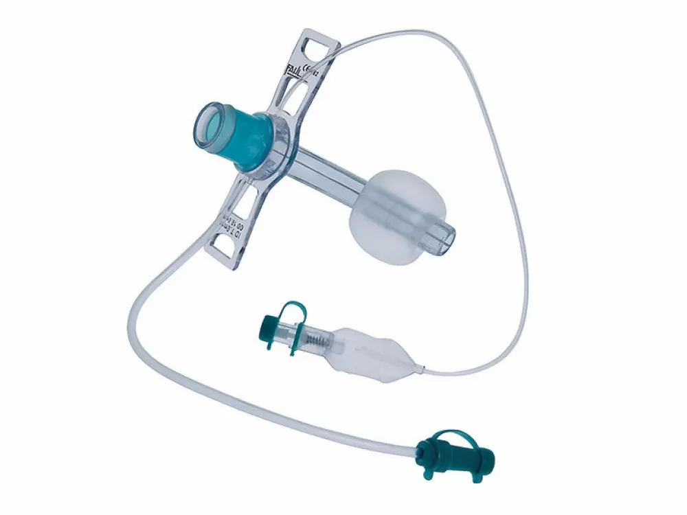 Τραχειοσωλήνας Tracheotec της Fahl Γερμανίας με ενσωματωμένο καθετήρα αναρρόφησης και cuff. Ο καθετήρας αναρρόφησης επιτρέπει την αναρρόφηση των εκκρίσεων που έχουν συγκεντρωθεί πάνω από το cuff. Ο τραχειοσωλήνας διαθέτει εύκαμπτο αυχένα και περιστρεφόμενη εξωτερική υποδοχή 15mm για σύνδεση με παρελκόμενο εξοπλισμό.