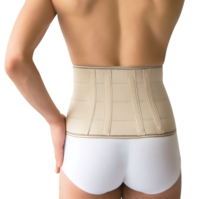 Ζώνη οσφύος τεσσάρων ελαστικών λωρίδων των 5cm. Σταθερή με ανατομική εφαρμογή στη μέση. Η επιπλέον ενίσχυση των ελαστικών λωρίδων επιτυγχάνει τη σωστή επαναφορά. Ενισχυμένη με τέσσερεις μπανέλες στην οσφυϊκή χώρα. Αυτοκόλλητο κλείσιμο εμπρός με velcro. Συνολικό ύψος 20cm. Πλένεται.